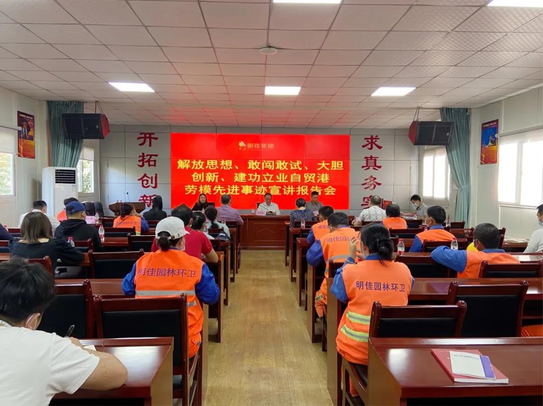 會上,全國勞動模范獲得者吉立斌、王小丹、海南省工人先鋒號代表符少菊,用樸實(shí)的語言、真摯的情感和鮮活的事例,分別從不同角度講述了他們在海南自由貿(mào)易港建設(shè)中愛崗敬業(yè)、刻苦鉆研、不畏艱難的奮斗故事,同時分享了自己對勞模精神和工匠精神的理解和體會,講述了感人而充滿正能量的故事,為明佳環(huán)衛(wèi)集團(tuán)的職工樹立了學(xué)習(xí)的榜樣。
