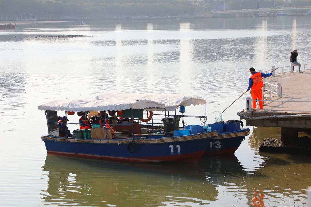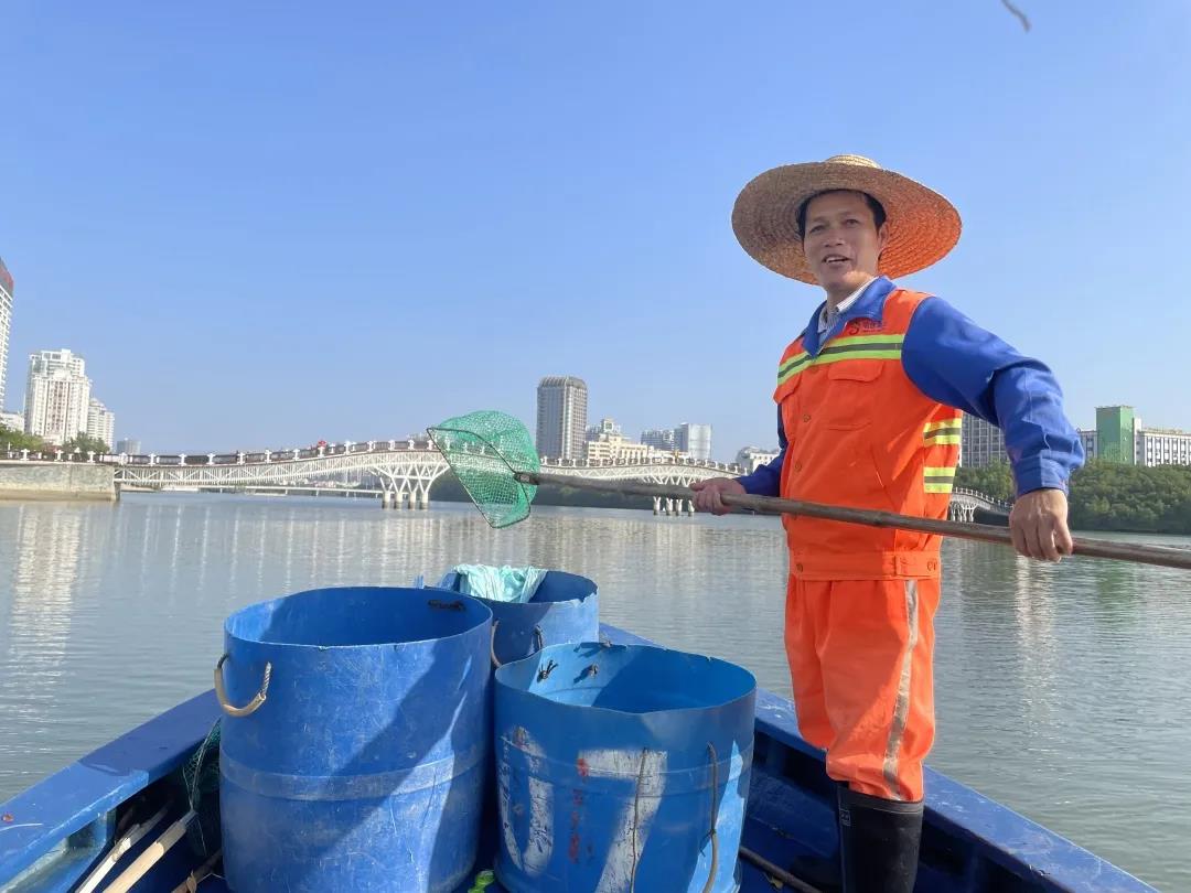曾靈是三亞明佳園林環(huán)衛(wèi)集團(tuán)天涯區(qū)環(huán)衛(wèi)二隊(duì)的一名員工,和我們平常在街邊看到清理地面垃圾的環(huán)衛(wèi)工人有所不同,他的工作是在船上完成的,每天需要站在作業(yè)船上,手持一把長(zhǎng)柄濾網(wǎng),將漂浮在三亞河上的落葉、紙屑等垃圾打撈起來(lái),放入專門的垃圾桶里再運(yùn)輸走。記者來(lái)到曾靈的工作地點(diǎn):三亞河,近距離了解他春節(jié)期間的工作是什么樣的……