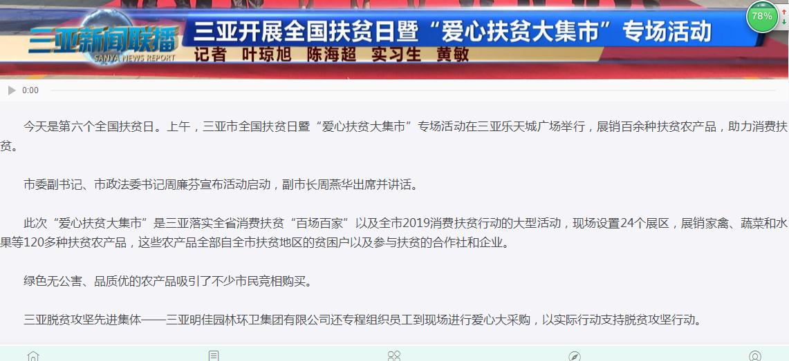 三亞明佳園林環(huán)衛(wèi)集團有限公司專程組織員工到現場進行愛心大采購,以實際行動支持脫貧攻堅行動。明佳集團總裁陳云親自到場組織協調采購活動。